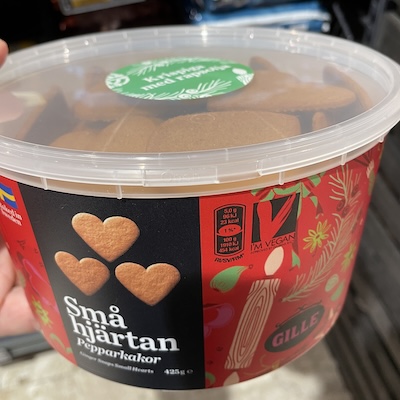 | Tillsatser Som tillsatser räknar vi de ingredienser som klassas som tillsatser av EU. Ju fler sådana produkten innehåller, desto lägre poäng.  | | 10  Tillsatser vägs in som 40% av totalen. | Industriella ingredienser Industriella ingredienser är sådant som inte klassas som tillsatser av EU, men som normalt inte används vid matlagning hemma. Ju fler sådana produkten innehåller, desto lägre poäng.  | | 7  Industriella ingredienser vägs in som 20% av totalen. | Aromer Aromämnen kan vara framställda på olika sätt och av olika råvaror. Om aromen inte specificeras alls har den fått en poäng, om den är naturlig utan angivande av ursprung har den fått fem poäng, om den är naturlig med angivande av ursprung har den fått nio poäng och produkter utan aromer har fått tio poäng. Produkterna har fått poäng efter den "sämsta" typen av arom som den innehåller.  | | 10  Aromer vägs in som 10% av totalen. | Ekologisk Ekologisk märkning: Ja (10 poäng) eller Nej (1 poäng).  | | 1  Ekologisk vägs in som 10% av totalen. | Ingredienser Samtliga ingredienser, enligt förpackningen.  | | Vetemjöl, socker, vegetabiliska oljor (palm*, raps, kokos), sirap, bakpulver (natriumbikarbonat), kanel, salt, ingefära 0,3%, kryddnejlika. *Hållbart producerad från certifierade odlare |